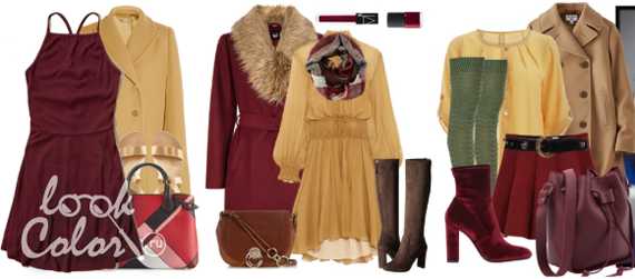 Бордовый частый спутник песочного: сочетание сочное, женственное, привлекательное.