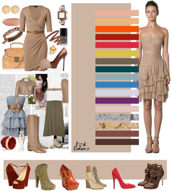 С какой обувью сочетается бежевый цвет смотрите на картинке.