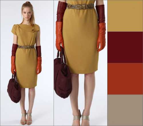 Теплые оттенки лучше сочетать с теплыми тонами — желтый, оранжевый, красный, розовый, малиновый.