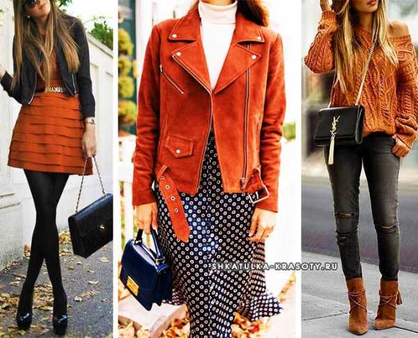 Аксессуары рыжего колора: сумка, обувь (сапоги, туфли), перчатки, пояса и ремни подойдут девушкам с любым цветотипом.