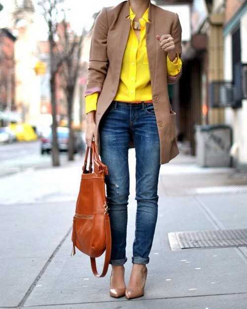 С чем сочетается желтый цвет в одежде: 13 фото образов
