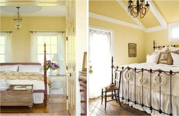 Еще варианты интерьера с бледно желтым цветом: