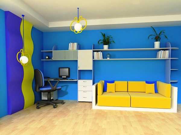 Яркий цвет солнышка любят малыши младшего, дошкольного возраста, он возбуждает и активизирует ребенка, поэтому использование желтых красок рекомендовано для игровой зоны детской, но для спальной желательны более спокойные оттенки, например, синие, серые, зеленые. Правильное дозирование тонов поможет создать в комнате приятный и свежий интерьер.