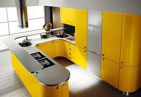 Отличной идеей будет сочетание черного и желтого цвета в интерьере кухни