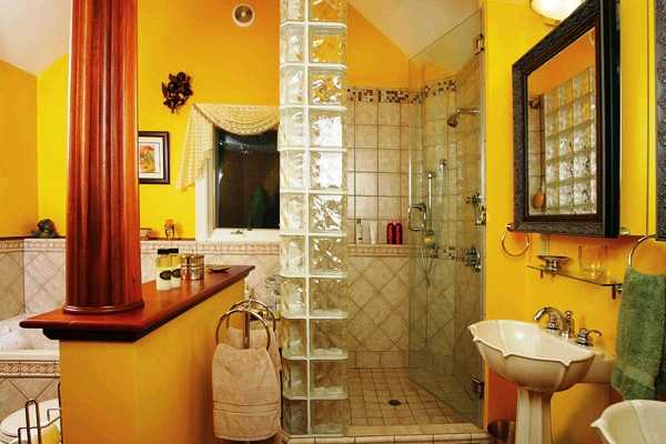 Если речь идет о ванной комнате, желтый цвет должен преобладать. Его можно немного разбавить белым.