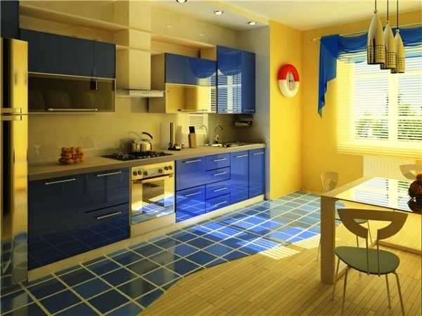 Желтый и синий можно сочетать и в более мягком варианте – выбрав приглушенные и светлые тона. Тогда и пространство помещения визуально увеличится.