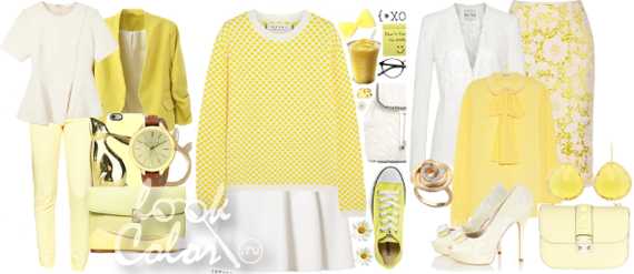 Каждому цветотипу подойдет свой оттенок бледно-желтого. Бледно-желтый цвет подчеркивает женственность. Воздушный, легкий, не смотря на холодный тон, он все-таки ближе к лету, к празднику, хотя в сочетании со строгими оттенками он подойдет и к офисному стилю.