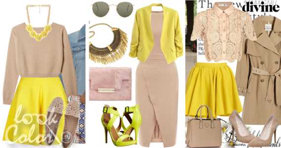 Цвета этой группы по мнению большинства способны создать классические комбинации практически с каждым цветом. Не стал исключением и желтый. Однако, каждый из них дарит ему особый, неповторимый характер, кардинально меняя настроение самого наряда.