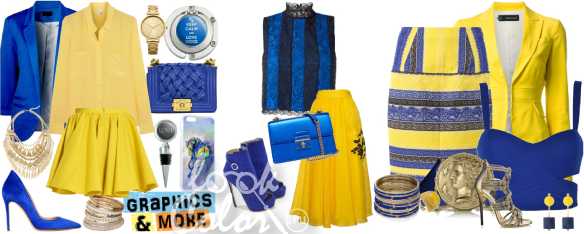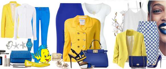 Стопроцентное попадание – это соединение в одном образе желтого с синим, которое является подсказкой, дарованной нам самой природой. Такая гамма прежде всего напоминает нам о лете, появляясь, соответственно, в большинстве коллекций именно для этого сезона. Тем не менее, умело варьируя оттенки, можно создать великолепный деловой лук или даже классический вечерний наряд. Для таких лучше всего подойдут сдержанные оттенки обоих цветов, а в повседневных образах как никогда уместны яркие и насыщенные тона.