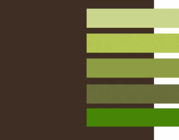 Сочетание коричневого цвета с теплыми оттенками зеленого.