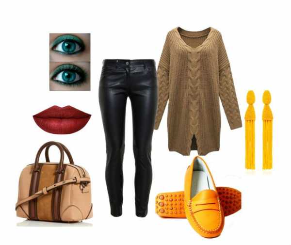 Для яркого радостного комплекта добавьте к светло-коричневому желтые или оранжевые акценты. Чтобы образ смотрелся стильно, не перегрузите его яркими пятнами. Старайтесь, чтоб их было не более двух. Крой одежды выбирайте простой, легкий, без лишних деталей.