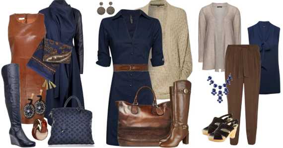 Черный утяжеляет темный синий. Разбавляйте это сочетание коричневым или бежевым.
