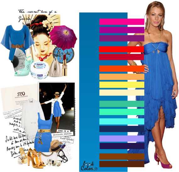 Также стоит попробовать сочетание ярко-синего цвета с голубым, фиолетовым, сиреневым и прочими оттенками. С их помощью образ может получится очень интересным и оригинальным.