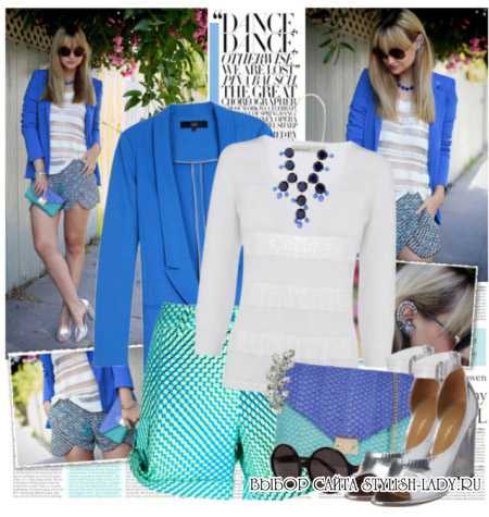 Белый в сочетании с синим – это, своего рода, «классика жанра». Особенно это касается лёгких летних комплектов, а также образов в морском стиле. Так, тельняшка стала уже, практически, одной из вещей базового гардероба.