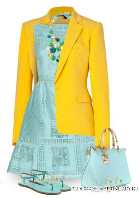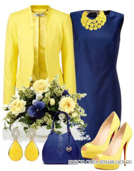 Ярким и жизнерадостным получится комплект, в котором сочетаются синий и желтый цвета. В таком наряде симпатии людей всегда будут на Вашей стороне. Единственное, стоит помнить, что каждый из этих цветов самодостаточен. Поэтому, комбинировать их желательно в неравных пропорциях. Один из них должен доминировать.