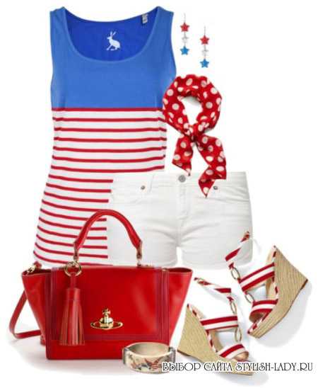 Присутствие в одном комплекте синего и красного позволяют себе дамы уверенные и решительные. Здесь лучше отдать предпочтение одному из цветов в качестве основного. Второй же использовать как акцент или в виде аксессуаров. Сочетание этих двух цветов очень контрастное и сильно утомляет глаз, поэтому стоит использовать его аккуратно.