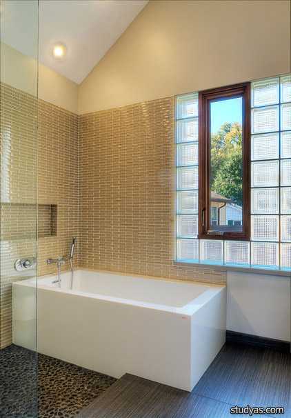 Коричнево-оранжевая ванная комната окутывает теплом и солнцем