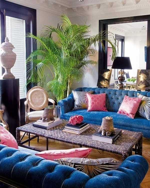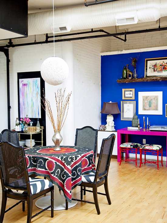 Сочетание цветов: синий и красный; синий и розовый в интерьере