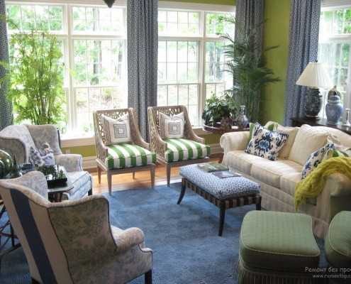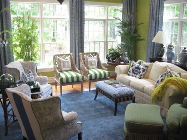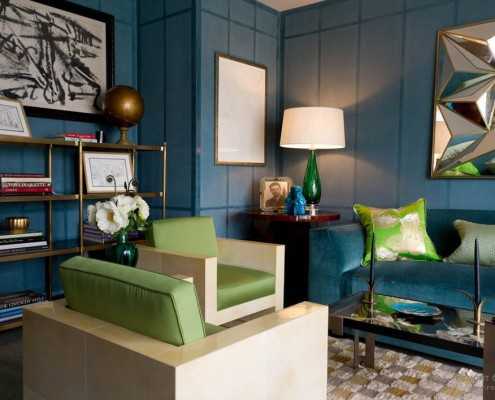 Сочетание: синий и серый; синий и зеленый в интерьере