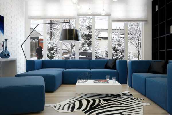 Дизайн квартиры в этом цвете – любимый вариант современных дизайнеров. Можно подобрать оттенок, подходящий для гостиной, спальни, кухни, холла, офиса. Теплых оттенков синего мало. Чаще всего это холодный цвет. Он будет гармонично смотреться в светлых солнечных комнатах с большими окнами.