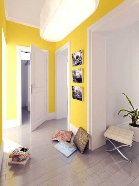 - Желтый. Модным несколько лет назад был сине-желтый дизайн в эклектичном стиле, где главное – уют. Имеет право на существование, но помните, что комбинировать нужно или теплые, или холодные желтый и синий цвета. Даже бледно-желтый создаст значительный контраст. Светлый желтый и васильковый – интерьер в деревенском стиле.