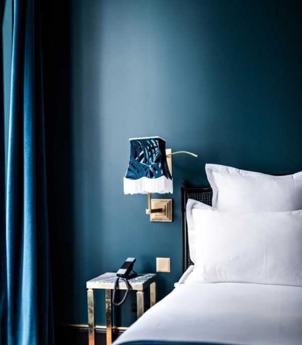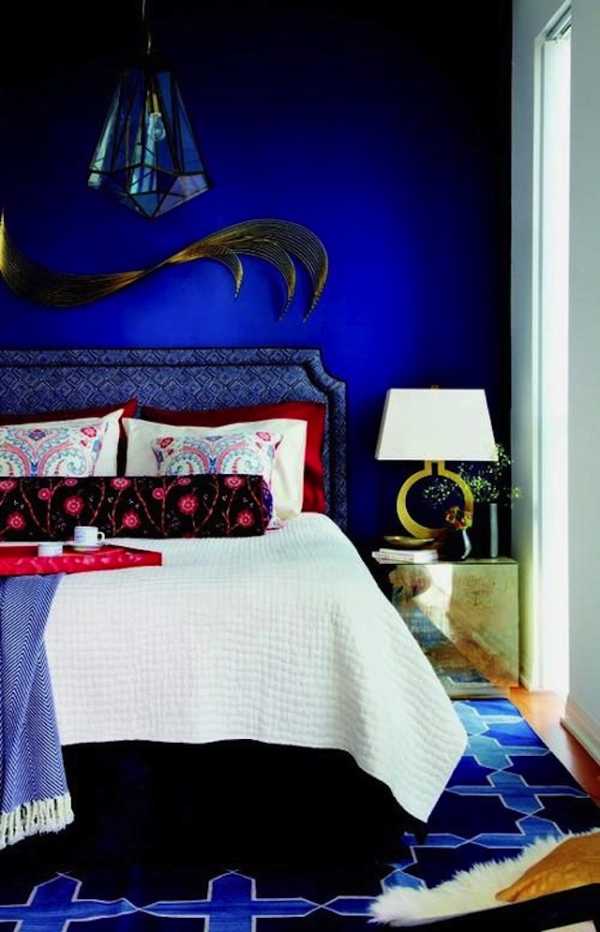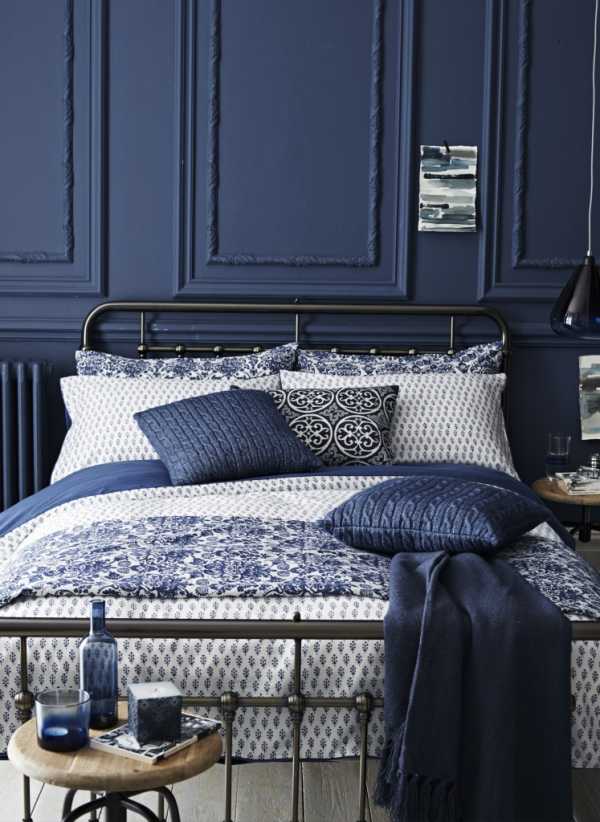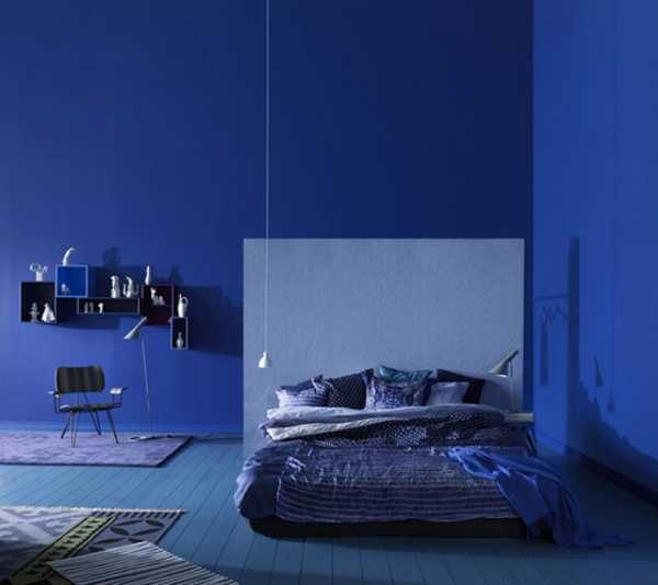 Глубокий синий, какой бы странной не показалась эта идея на первый взгляд, уместен при покраске стен в маленьких помещениях. Такая комнатка выглядит действительно уютно за счет того, что стены и углы «растворяются». Такой вариант подойдет для спальни. В комнатах с большой площадью темный оттенок неуместен, особенно если его много. В этом случае для стен лучше подобрать обои голубого, аквамаринового цвета, а для штор, диванных подушек, пуфов, картин взять индиго или темный сапфировый.