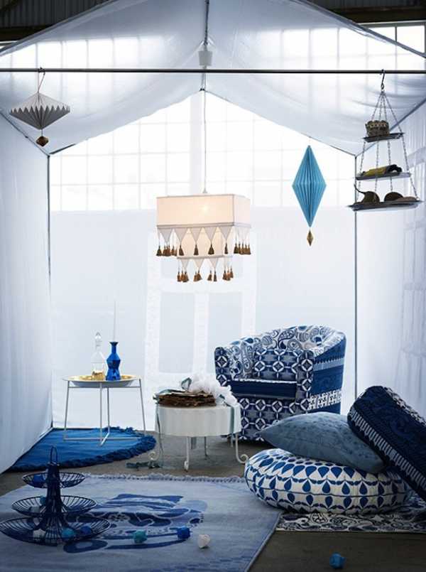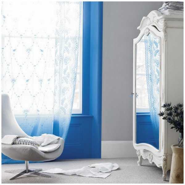 Планируя интерьер квартиры в этом цвете, обратите внимание на освещение. Это важно и для офиса. Одного источника света мало, особенно для гостиной. Люстру дополните точечными источниками света по периметру или в углах. Для стен подберите бра, поставьте торшеры и настольные лампы. Этот цвет визуально расширяет помещение и зрительно удаляет предметы. Используйте его в оформлении стен маленьких южных и восточных комнат. Голубоватый потолок сделает комнату выше. Синие шторы в интерьере «расширят» окно.