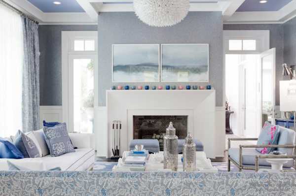 Синий цвет в интерьере для гостиной – это мебель, шторы, картины и другие аксессуары. Освежит дизайн гостиной, кардинально его не меняя, один крупный аксессуар или несколько мелких. Используйте в гостиной не один, а 3-4 оттенка. Вы избежите «стерильности» в обстановке. Светлый синий цвет стен в гостиной гармонирует с более темной мебелью. Яркие обои в гостиной дополнит аквамариновый, серо-зеленый, серо-лиловый, жемчужно-серый в обстановке.