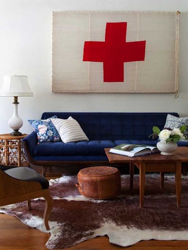 Еще одна тонкость. Не стоит брать эти цвета в одинаковом количестве, тогда их борьба станет слишком явной. Лучше, если один из них будет доминирующим, а второй дополняющим. Кому какую роль отдать зависит от температурного предпочтения для комнаты. Если задача сделать помещение более теплым, то основным должен быть красный. Для прохладной атмосферы отдайте соло синему.