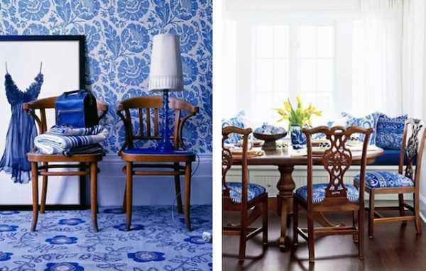 Сочетание цветов в интерьере: синий и красный; синий и розовый
