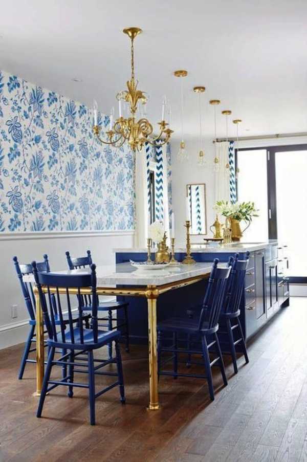Синий часто сочетают с золотым и серебряным. Такой интерьер выглядит стильно, но главное — не переборщить.