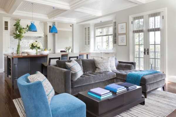 За счет летних красок интерьер обретает прохладу и элегантность. В выборе текстиля отдайте предпочтение шелку, сатину, велюру или тонкому льну.