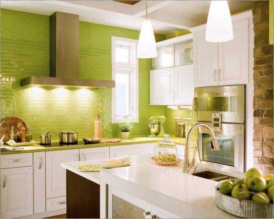Гамма цветов, которую можно использовать в оформлении этой части квартиры, отличается особой широтой. Здесь при декорировании следует учитывать ряд нюансов. Так, к примеру, гамма цветов может повысить или, наоборот, умерить аппетит. В первом случае в интерьере используют теплые сочные оттенки. К ним относят яичный желтый, травяной зеленый, оранжевый. Умерить аппетит помогут белый и голубой.