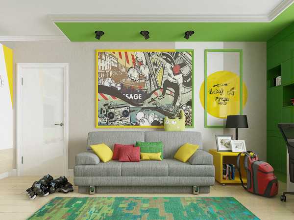 Это самая разнообразная палитра с самыми неожиданными сочетаниями. В большинстве случаев выбираются либо яркие акценты, либо в целом довольно броская комбинация. Конечно, и сложность гаммы не ограничена, хотя стоит помнить, что более шести оттенков будут напрягать глаз. Как не странно, но в этом стиле часто используется черный цвет, и как основа, и как дополняющий. С помощью него достигается предельная контрастность, к которой стремятся творческие люди.