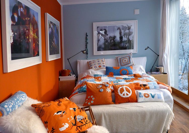 В летнее время и так будет жарко, а такие яркие краски только усилят тепловой эффект. - В интерьере должно преобладать всего два цвета или их оттенка, так как оранжевый сам по себе насыщенный и полноценный.