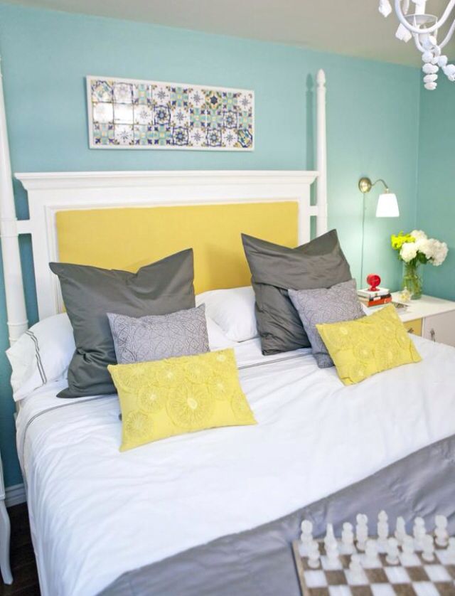 Попробуйте это интересное сочетание цветов с желтыми стенами, и вам понравится окончательный вид вашей спальни.