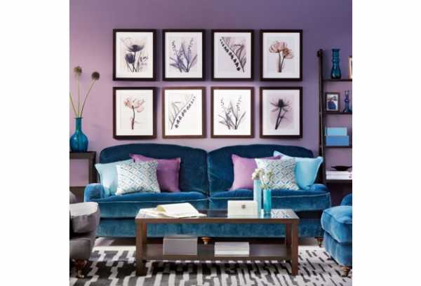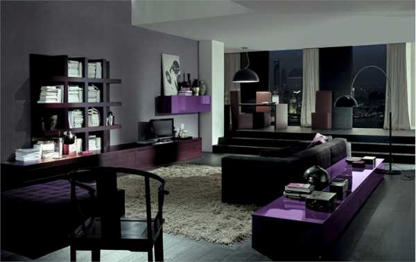 фиолетовый цвет в интерьере гостиной
