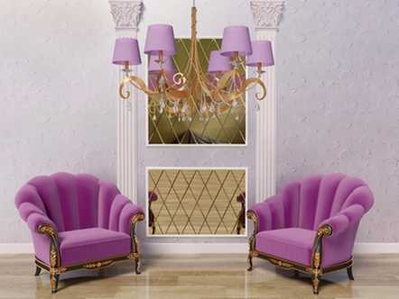 Фиолетовый и золотой служат для создания роскошных интерьеров. Недаром это сочетание часто использовалось в одеяниях монархов. Оно вызывает ассоциации с помпезностью и хорошо подходит для интерьеров в стиле ампир и барокко, викторианском стиле. Но и для современных направлений оно приемлемо, хотя и не будет выглядеть так же эффектно.
