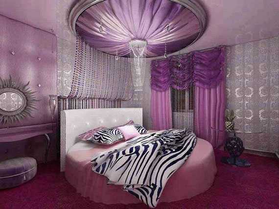 молодежная спальня в фиолетовом цвете