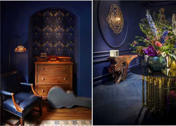 Фиолетово-синий в интерьере сморится богато, изысканно, необычно. Порой такой дизайн воспринимается негативно, так как жить в «сумраке» не всем кажется удобным. Однако, его эксцентричность привлекает неординарные личности.