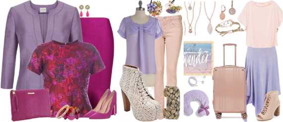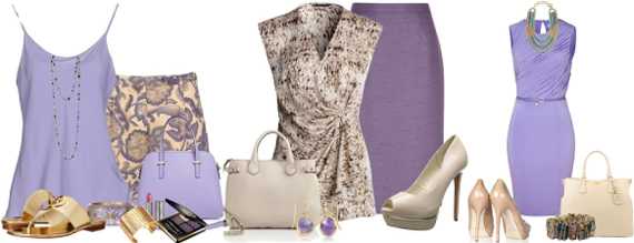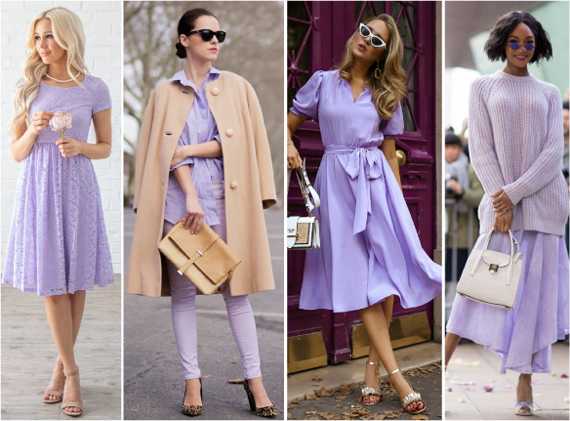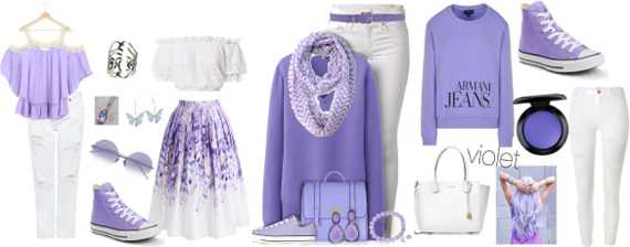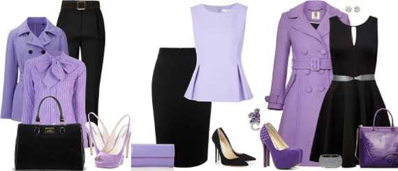 Сочетание сиреневого цвета в одежде могут быть разными: от девственно чистых, до кричащих, но как уже было сказано, предпочтения отдают нежным композициям.