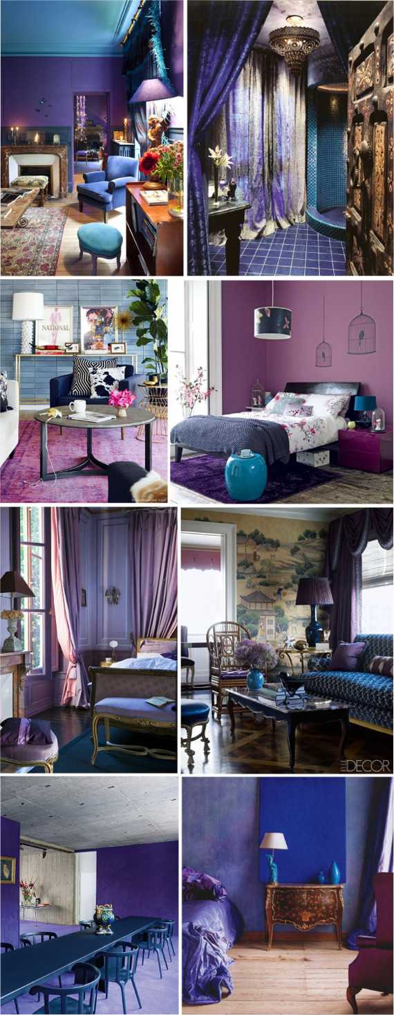 Сочетание фиолетово-синего часто основано на световом контрасте: чем светлее тон рядом с ним, тем эффектней смотрится пара. Как глубокий холодный оттенок, он так же создает эффектные тепло-холодные композиции.