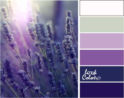 Лавандовый предпочитает контрастные сочетания, такие как с перламутрово-розовым, цветом фуксии, желтой охры, бледно-желтым, светло-оранжевым, ядовито-зеленым, салатовым, ментоловым, сине-фиолетовым, небесно-голубым, виноградным, темно-фиолетовым, бежевым, коричневым и темно-коричневым.