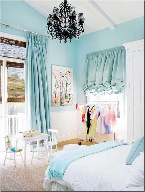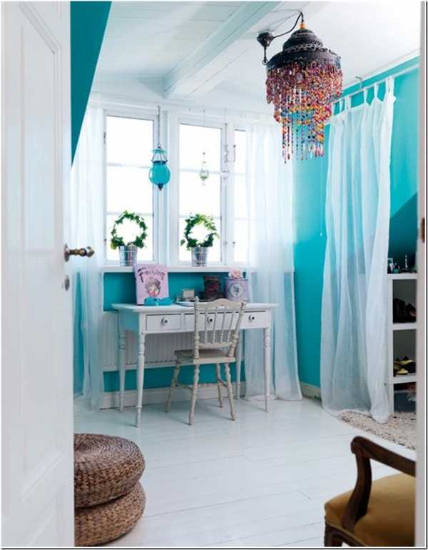 Совет! Используйте небесные оттенки в помещениях с выходом на юг, где много солнца. Голубые шторы или стены принесут в теплую комнату освежающую прохладу.