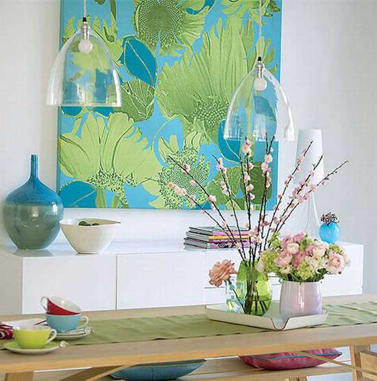 Голубое и зеленое в интерьере в пастельных оттенках оказывают на психику человека спокойное и умиротворяющее влияние, можно использовать такие цвета в самых разных количествах, добавляя белый цвет в качестве основного и яркие цвета в качестве акцентов.
