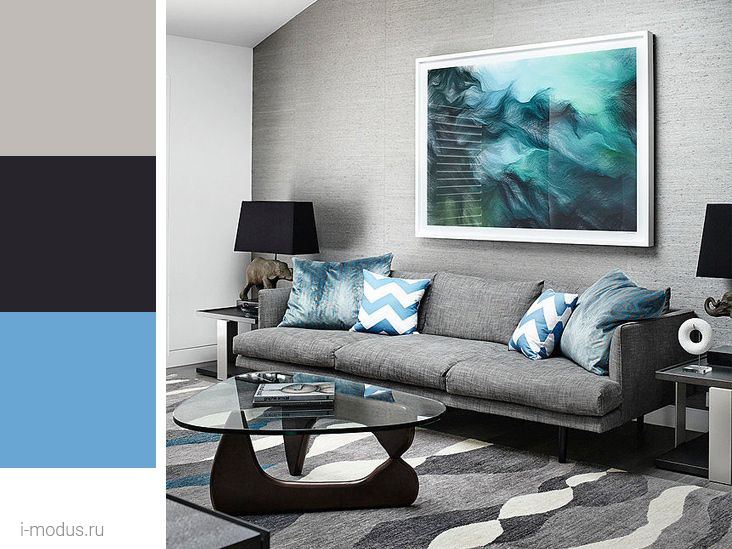 Голубой цвет в интерьере гостиной будет отличным вариантом
