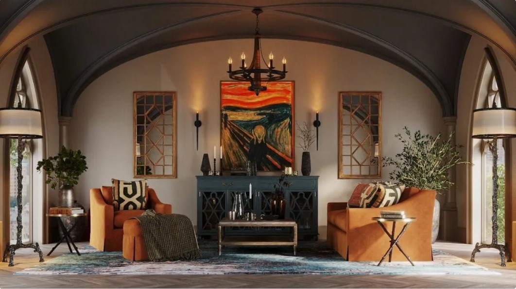 Украшение красным — это смелый шаг, который становится еще смелее, если вы добавите в смесь оранжевый цвет. Но если вы не боитесь яркой палитры, пара может стать ошеломляющим заявлением. Чтобы цвета не преобладали над вашим пространством, рассмотрите возможность использования их в принте. Мы знаем, мы знаем — красно-оранжевый принт звучит как кошмар для домашнего декора. Но нейтральный цвет фона отпечатка сбалансирует яркие оттенки, делая их немного приятнее для глаз.