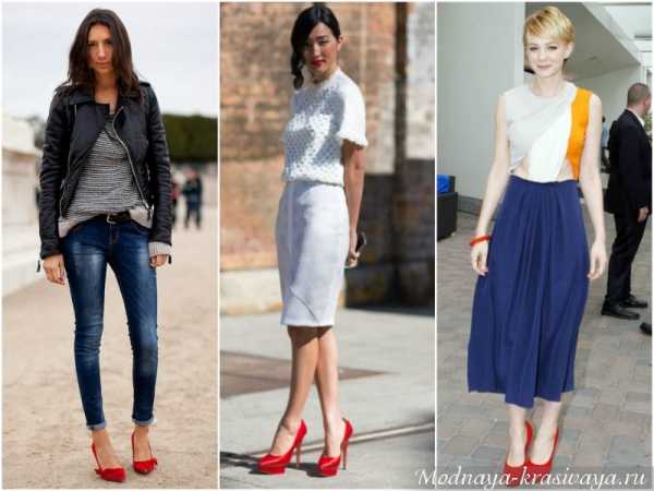 - если ноги красивые — красные туфли лучший вариант обуви,