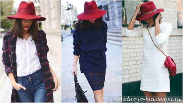 Красная шляпа замечательно впишется в гардероб, главное ее подобрать согласно фактуре. Она может быть чудесным дополнением к черной верхней одежде, легкому сарафану, придать таинственность вечернему платью.