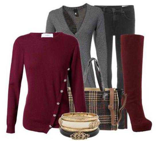 Вернемся к вопросу о самодостаточности сочетания. Думаю, вы прекрасно знаете, что комбинируя красный и серый в одежде, подобрать дополнительные цвета очень трудно – подходят только разные оттенки серого, черный и белый. Изредка хорошо смотрится бирюза, темная зелень или желтый. Но в целом гораздо проще подобрать ахроматические аксессуары.